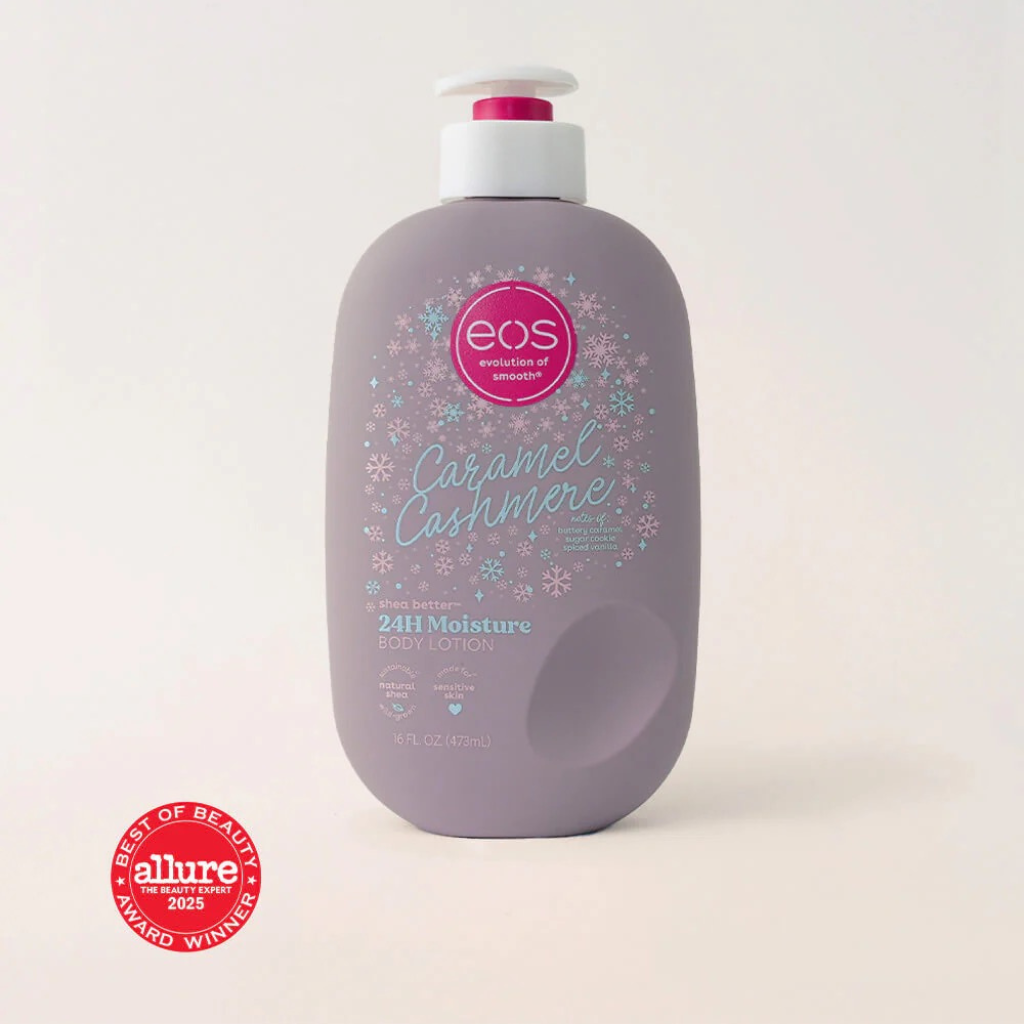 La colección Cashmere Body Lotion de EOS envuelve la piel en un acabado aterciopelado, hidratado y perfumado por horas. Su fórmula ligera y absorbente deja un glow suave, ideal para usar después de la ducha o como toque final antes de salir. Perfectas para quienes aman fragancias acogedoras con un twist invernal.